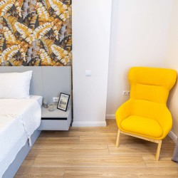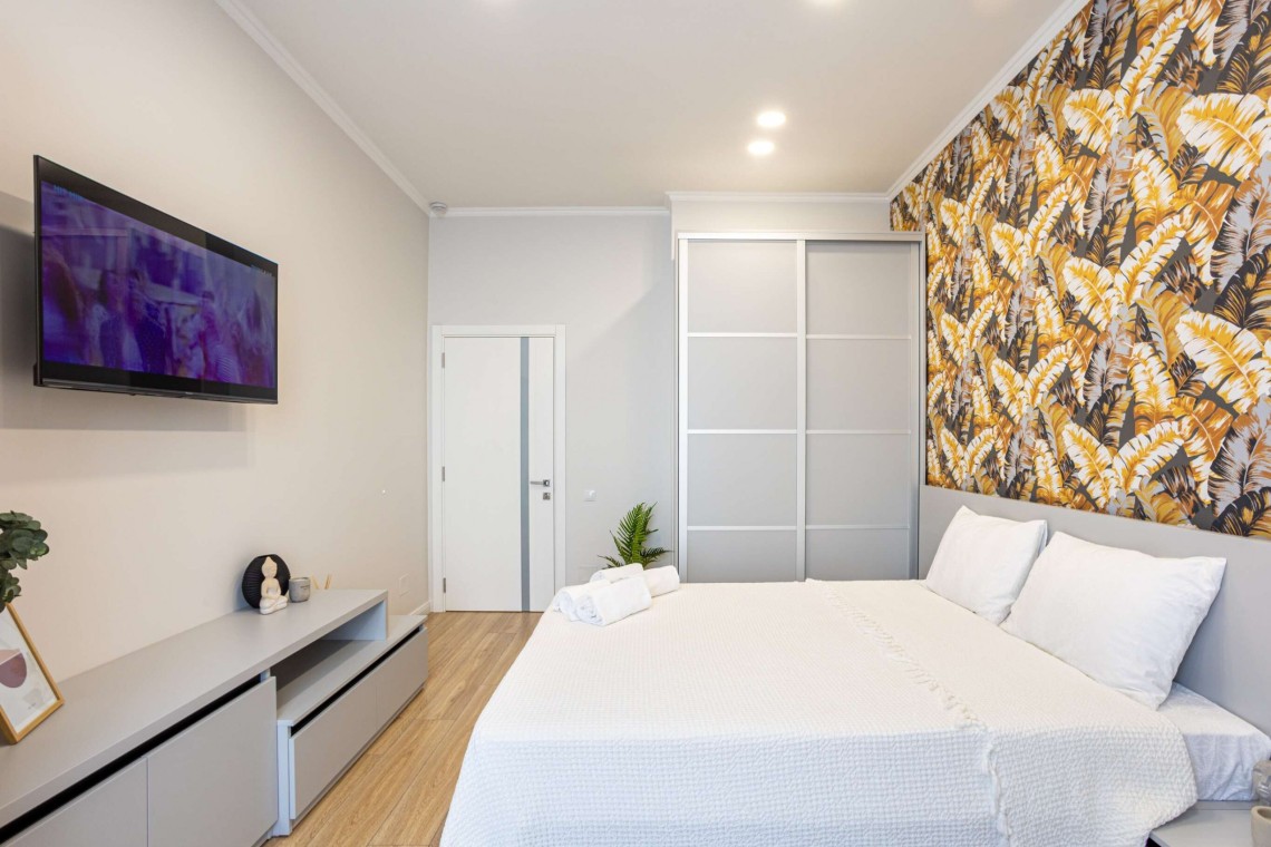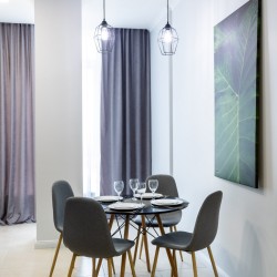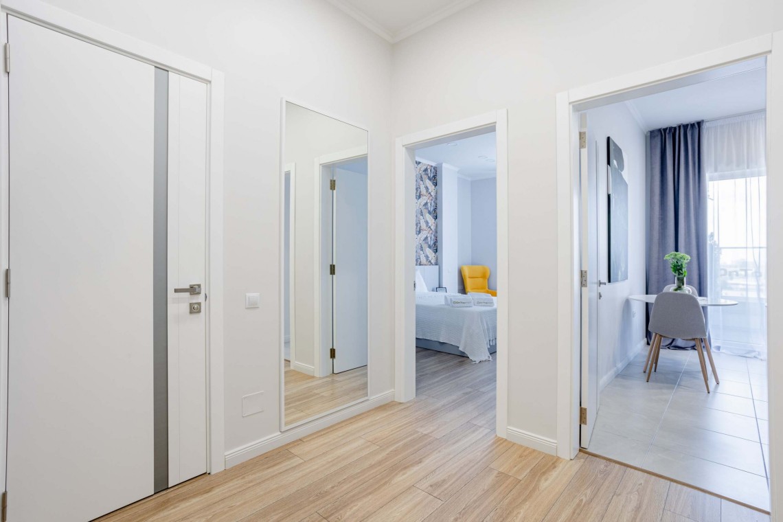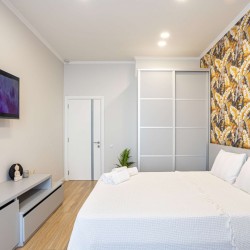 Un apartament luminos și spațios,pune la dispoziție wifi gratuit,aer condiționat . Apartamentul are o suprafață de 45m2 cu un dormitor,lenjerii de pat, 1 bloc sanitar,prosoape și tacâmuri incluse.